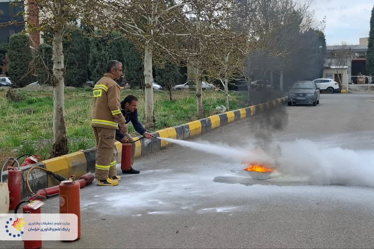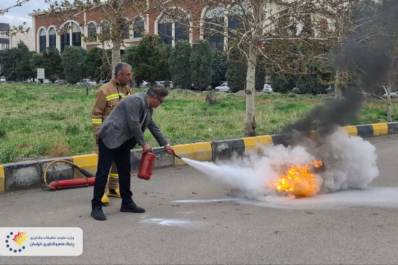 • برگزاری دوره آموزشی (تئوری و عملی) اطفاء حریق در پارک علم و فناوری خراسان‌رضوی