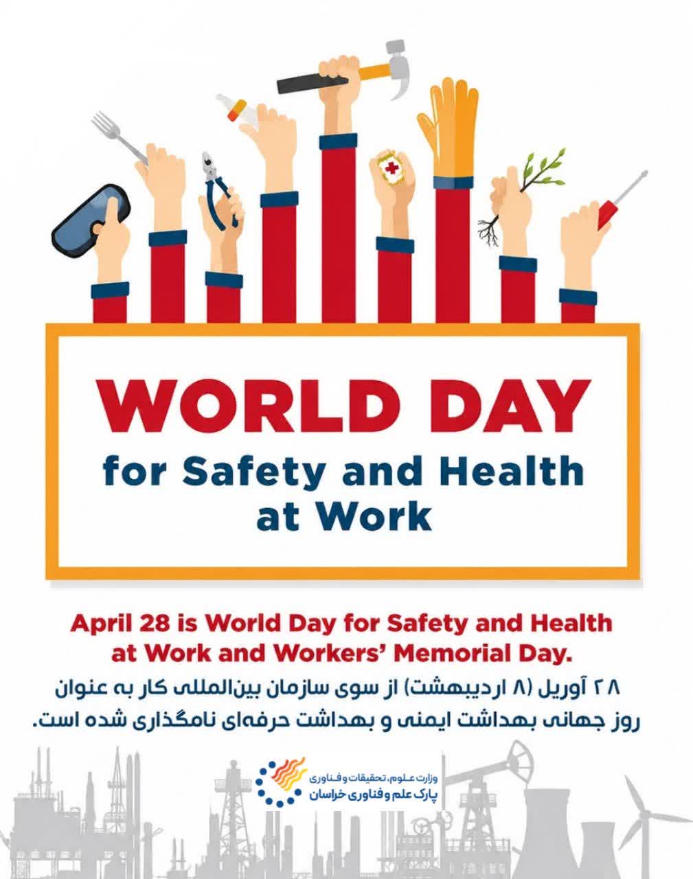 • به مناسبت روز جهانی ایمنی و سلامت محیط کار، گزارش اقدامات پارک علم و فناوری خراسان در حوزه HSE منتشر می‌گردد